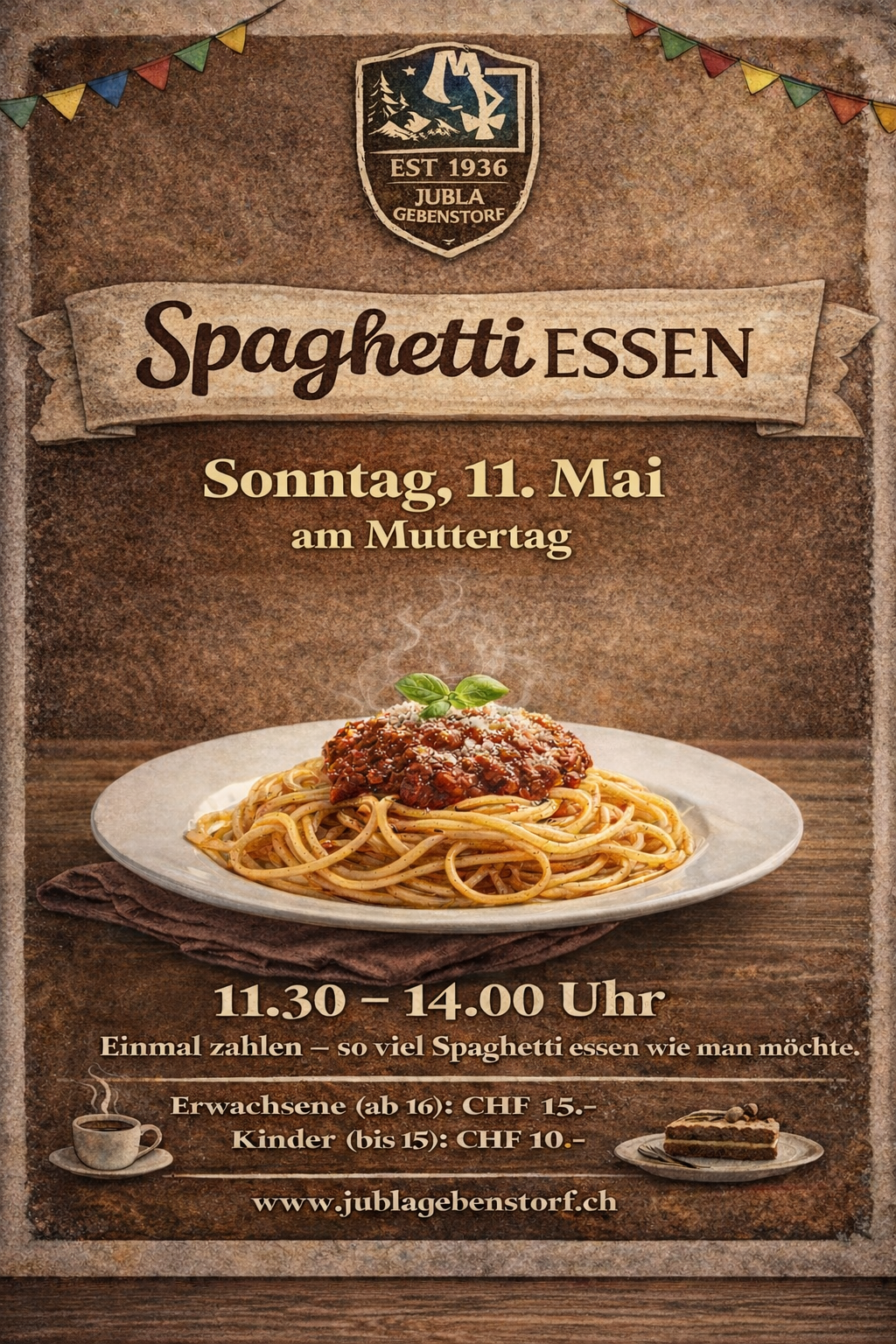 Unser alljährliches Spaghettiässe findet auch dieses Jahr wieder statt kommt gerne an Muttertag vorbei.